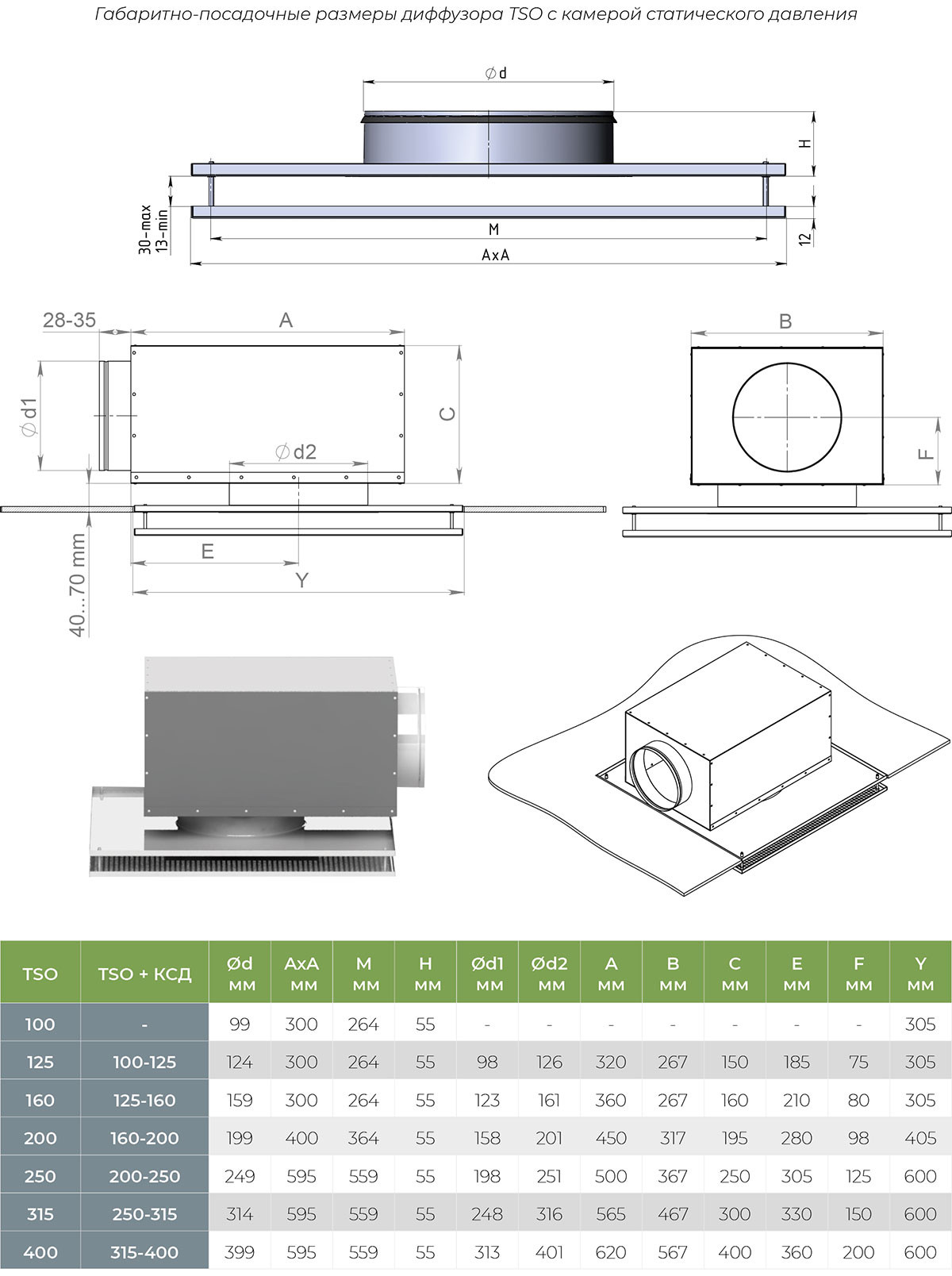 Диффузор устанавливается непосредственно в воздуховод или посредством камеры статического давления. Если монтаж производится к камере, то длина прямого воздуховода до камеры должна составлять не менее 4-х диаметров воздуховода. Заказать КСД для TSO.